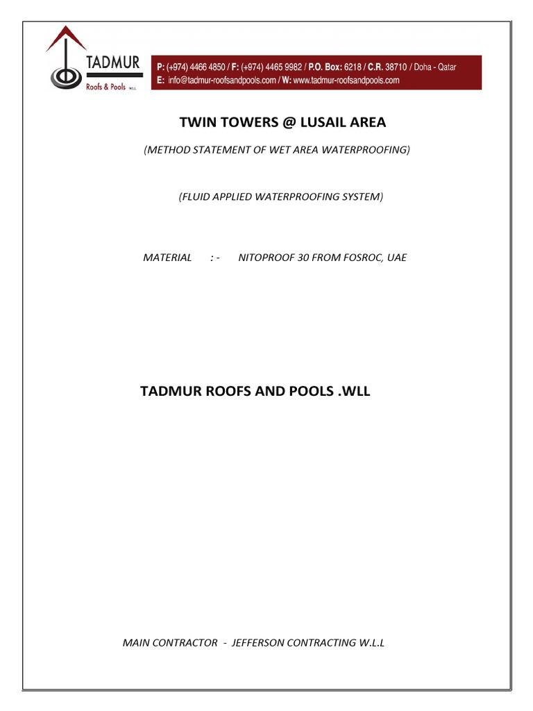 Roof waterproofing method statement doc free download as word doc doc pdf file pdf text file txt or read online for free.